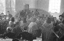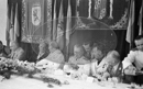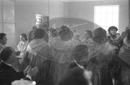 Franco visita Ponferrada para inaugurar la central térmica de Compostilla. Saliendo de la catedral. Comida despues de los actos y visita a la central
