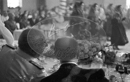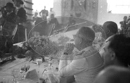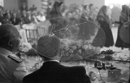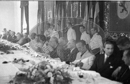 Franco visita Ponferrada para inaugurar la central térmica de Compostilla. Saliendo de la catedral. Comida despues de los actos y visita a la central