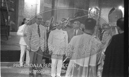 Franco visita Ponferrada para inaugurar la central térmica de Compostilla. Saliendo de la catedral. Comida despues de los actos y visita a la central