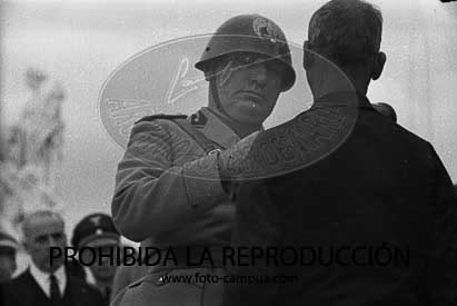 Musolini preside un desfile militar en Roma con la asistencia de su Ministro del Interior y de Serrano Suñer, Ministro de Asuntos Exteriores de España.