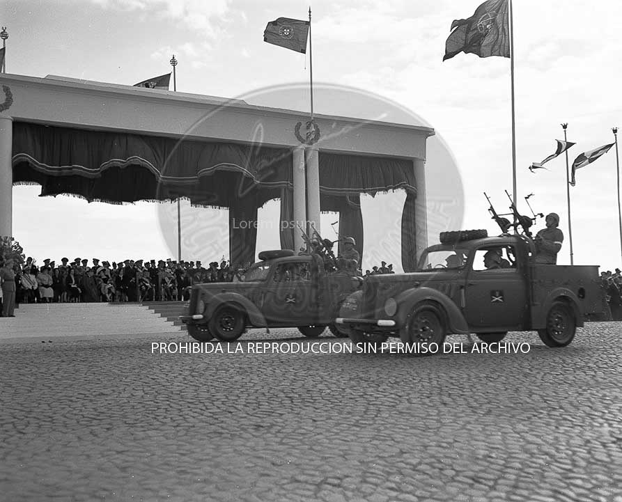 Visita de Franco a Portugal. Llegada, recibimiento por el Mariscal Carmona y desfile. 22/10/1949