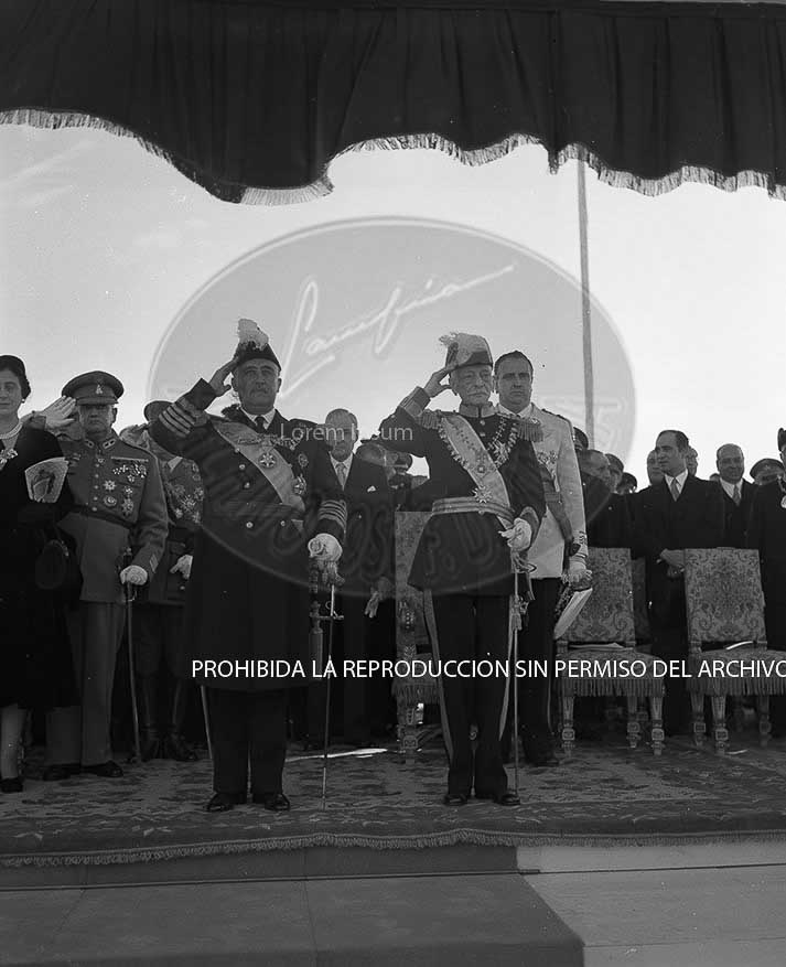 Visita de Franco a Portugal. Llegada, recibimiento por el Mariscal Carmona y desfile. 22/10/1949