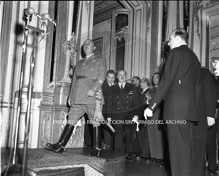 Visita de Franco a Portugal. Franco aclamado a su llegada al Palacio Quelez. Franco saluda al Cuerpo Diplomático acreditado en Lisboa.