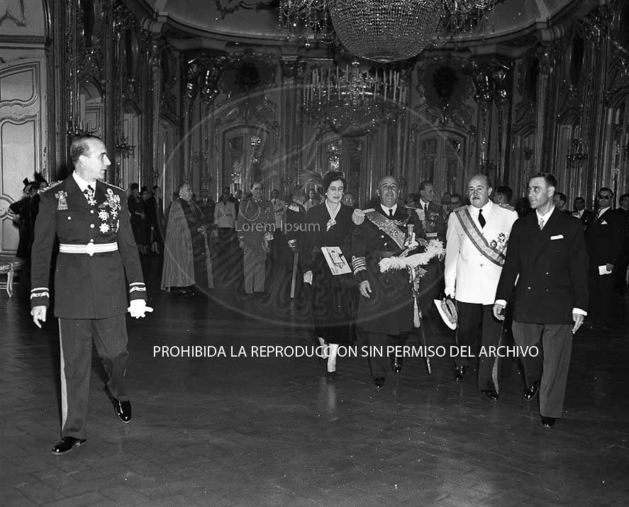Visita de Franco a Portugal. Franco aclamado a su llegada al Palacio Quelez. Franco saluda al Cuerpo Diplomático acreditado en Lisboa.