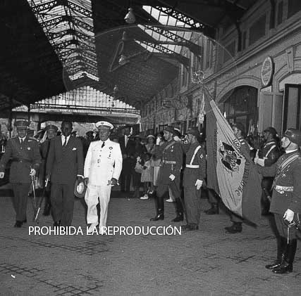 El Presidente Tubman es recibido en la estación del Norte de Madrid por Franco