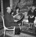 La esposa del Presidente Oria del Perú, Dª Maria Delgado Romero, es recibida por Franco en El Pardo.