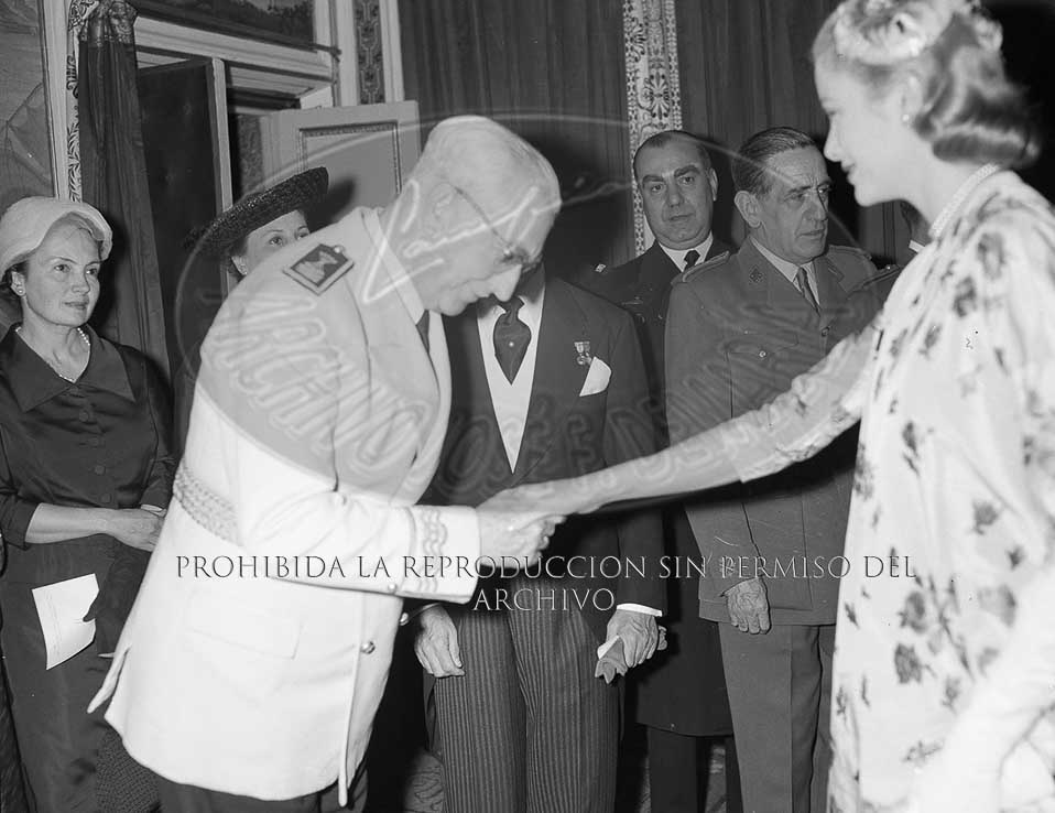 Los Principes de Mónaco, Rainiero y Grace, son recibidos por el Jefe del Estado Francisco Franco en el Palacio de El Pardo
