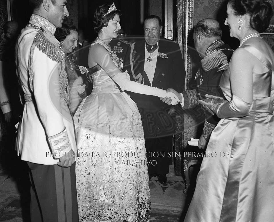Cena de gala en el Palacio de Oriente en honor del Sha de Persia, Reza Pahlavi y su esposa Soraya Estafandrani