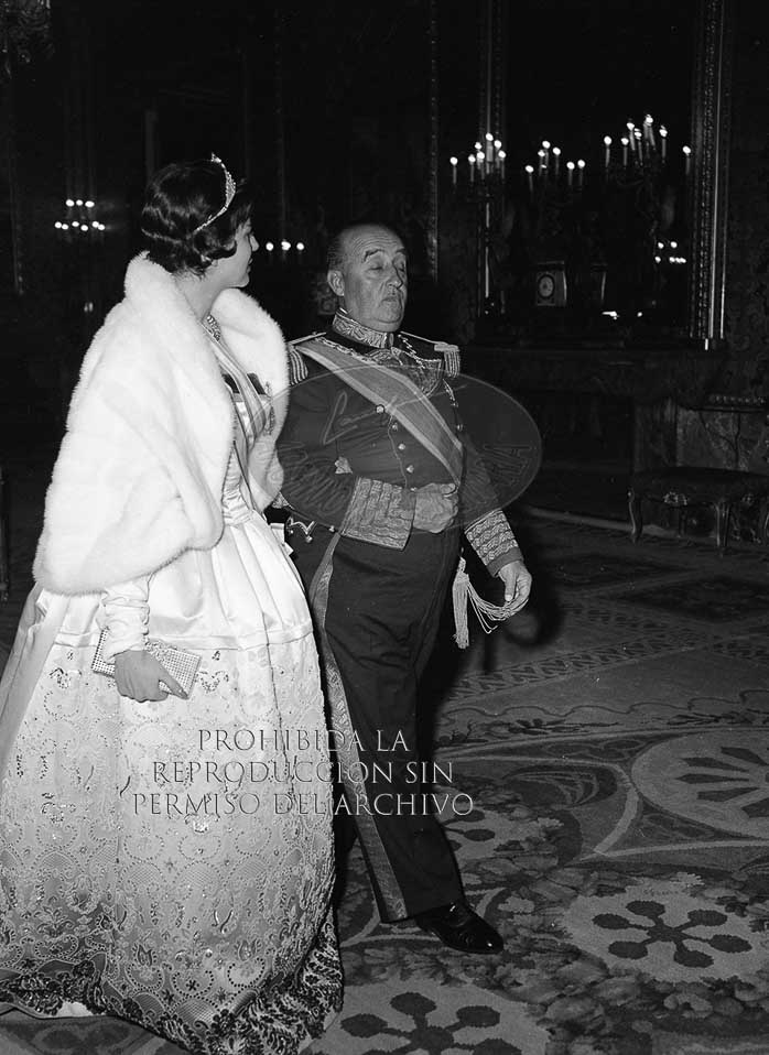 Cena de gala en el Palacio de Oriente en honor del Sha de Persia, Reza Pahlavi y su esposa Soraya Estafandrani