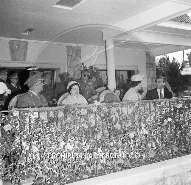 El Sha de Persia y su esposa Soraya asisten a un concurso hipico en el hipódromo de La Zarzuela.