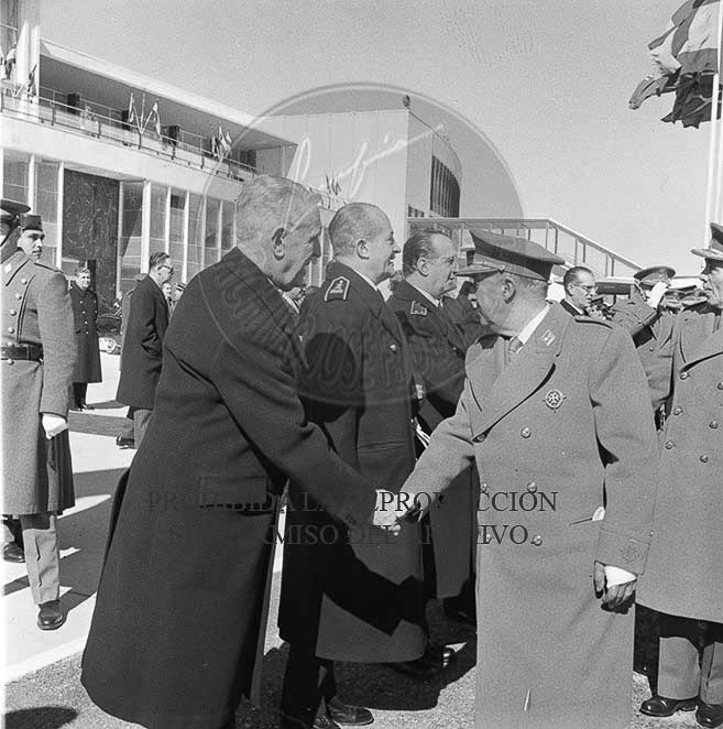 El Rey Saud llega al aeropuerto de Barajas donde es recibido por el Jefe del Estado Francisco Franco.