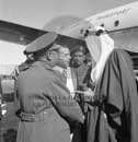 El Rey Saud llega al aeropuerto de Barajas donde es recibido por el Jefe del Estado Francisco Franco.