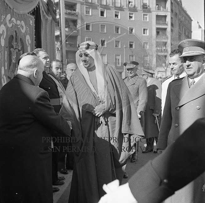 El Rey Saud recorre las calles de Madrid en coche descubierto tras su llegada a España en visita oficial