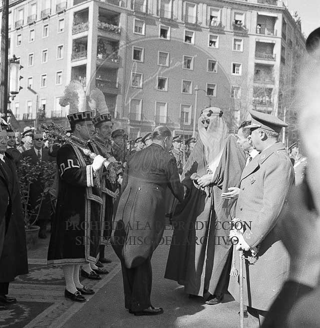 El Rey Saud recorre las calles de Madrid en coche descubierto tras su llegada a España en visita oficial