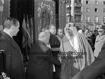 El Rey Saud recorre las calles de Madrid en coche descubierto tras su llegada a España en visita oficial.