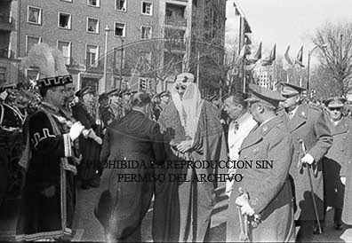 El Rey Saud recorre las calles de Madrid en coche descubierto tras su llegada a España en visita oficial.