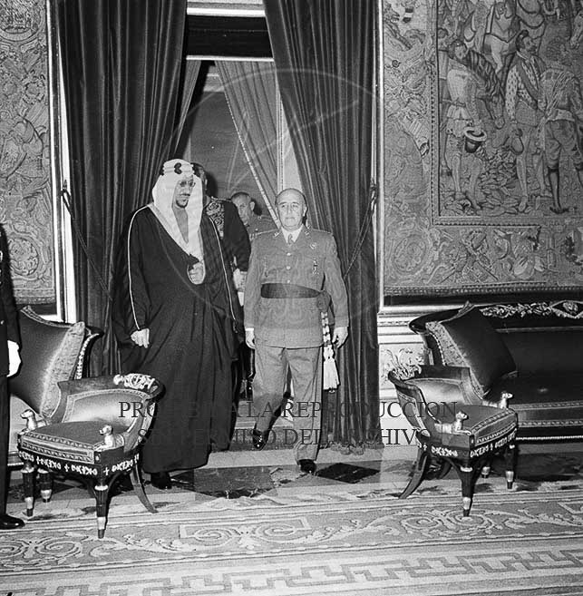 El Rey Saud es recibido por Franco en el Palacio de El Pardo