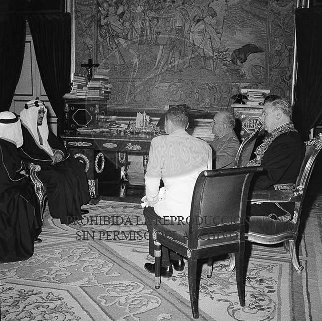 El Rey Saud es recibido por Franco en el Palacio de El Pardo