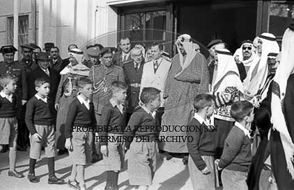 El Rey Saud es visita el horfanato de El Pardo, en la ciudad de la beneficencia, en Carabanchel, Madrid.