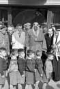 El Rey Saud es visita el horfanato de El Pardo, en la ciudad de la beneficencia, en Carabanchel, Madrid.