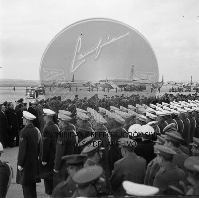 Llegada a Barajas del Presidente Eisenhower. Desfile en el Paseo de la Castellana.