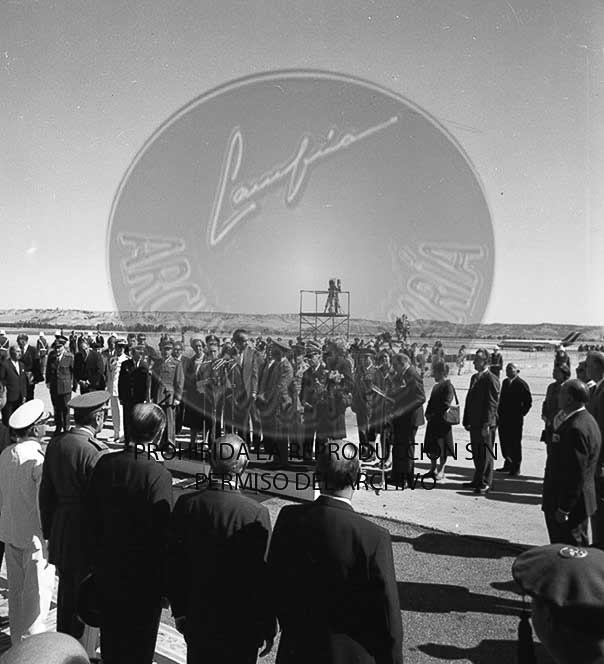 Llegada del Presidente Nixon a España. Franco le recibe en Barajas, paso por la Gran Via