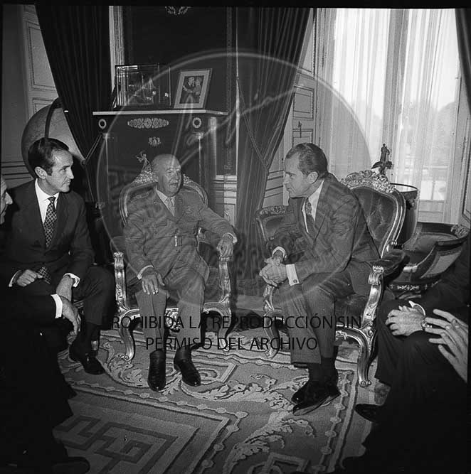Visita del Presidente Nixon a España. Franco le recibe en El Pardo.