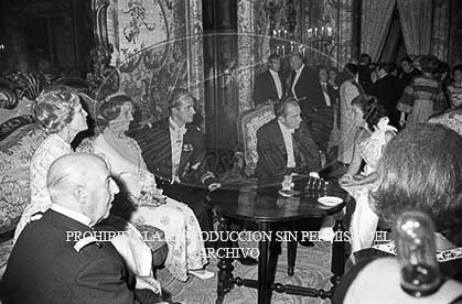 Cena de gala en el Palacio de Oriente en honor del Vicepresidente Nixon. Asisten los Principes de España.