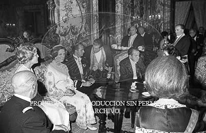 Cena de gala en el Palacio de Oriente en honor del Vicepresidente Nixon. Asisten los Principes de España.