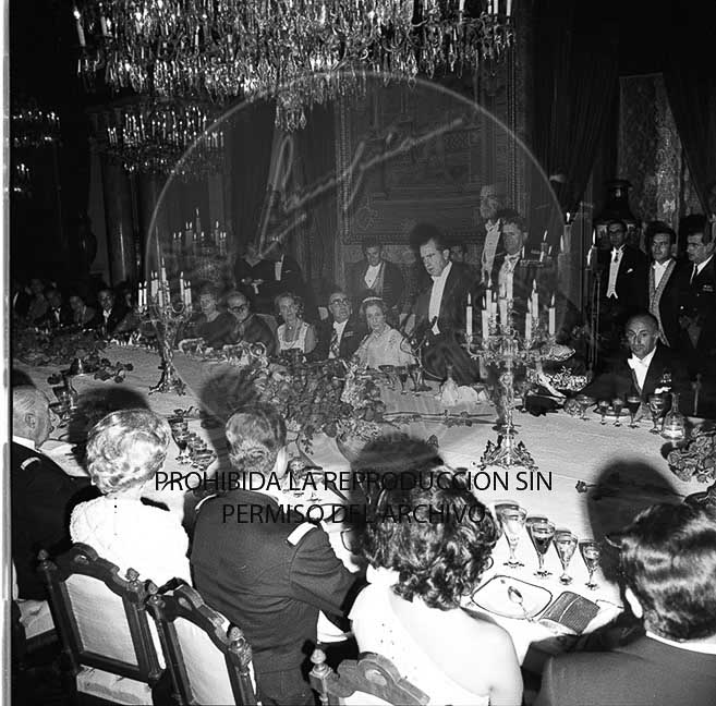 Cena de gala en el Palacio de Oriente en honor del Vicepresidente Nixon. Asisten los Principes de España.