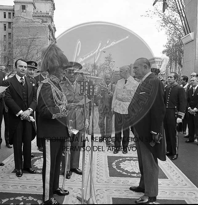 Haile Selasie, Emperador de Etiopia, El Negus, visita oficialmente España. Entrega de las llaves de Madrid por el alcalde Sr. Arias Navarro, recepcion en El Pardo