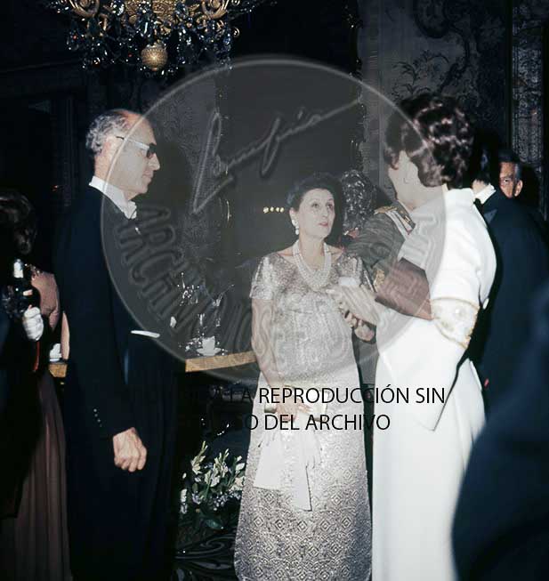 Haile Selasie, emperador de Etiopia, El Negus, visita oficialmente España. Cena de gala en el Palacio de Oriente, con asistencia de los Principes de España.