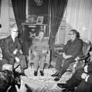 El Secretario de Estado de Exteriores Mr. Henry Kissinger, acompañado del Ministro de AA.EE. españón Sr. López Rodó, es recibido en El Pardo por el Jefe del Estado Francisco Franco.