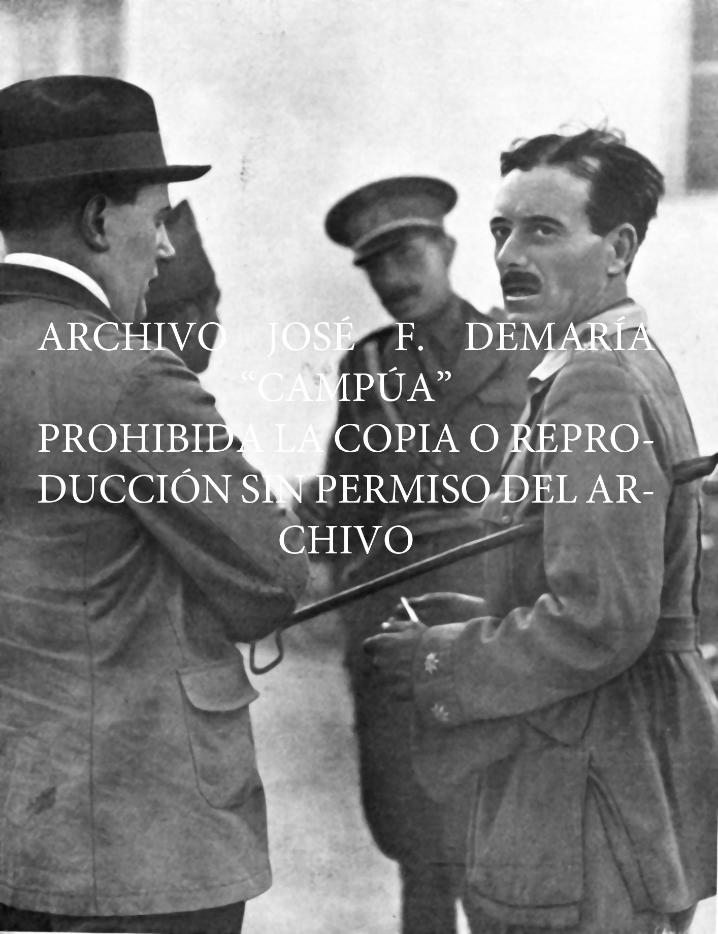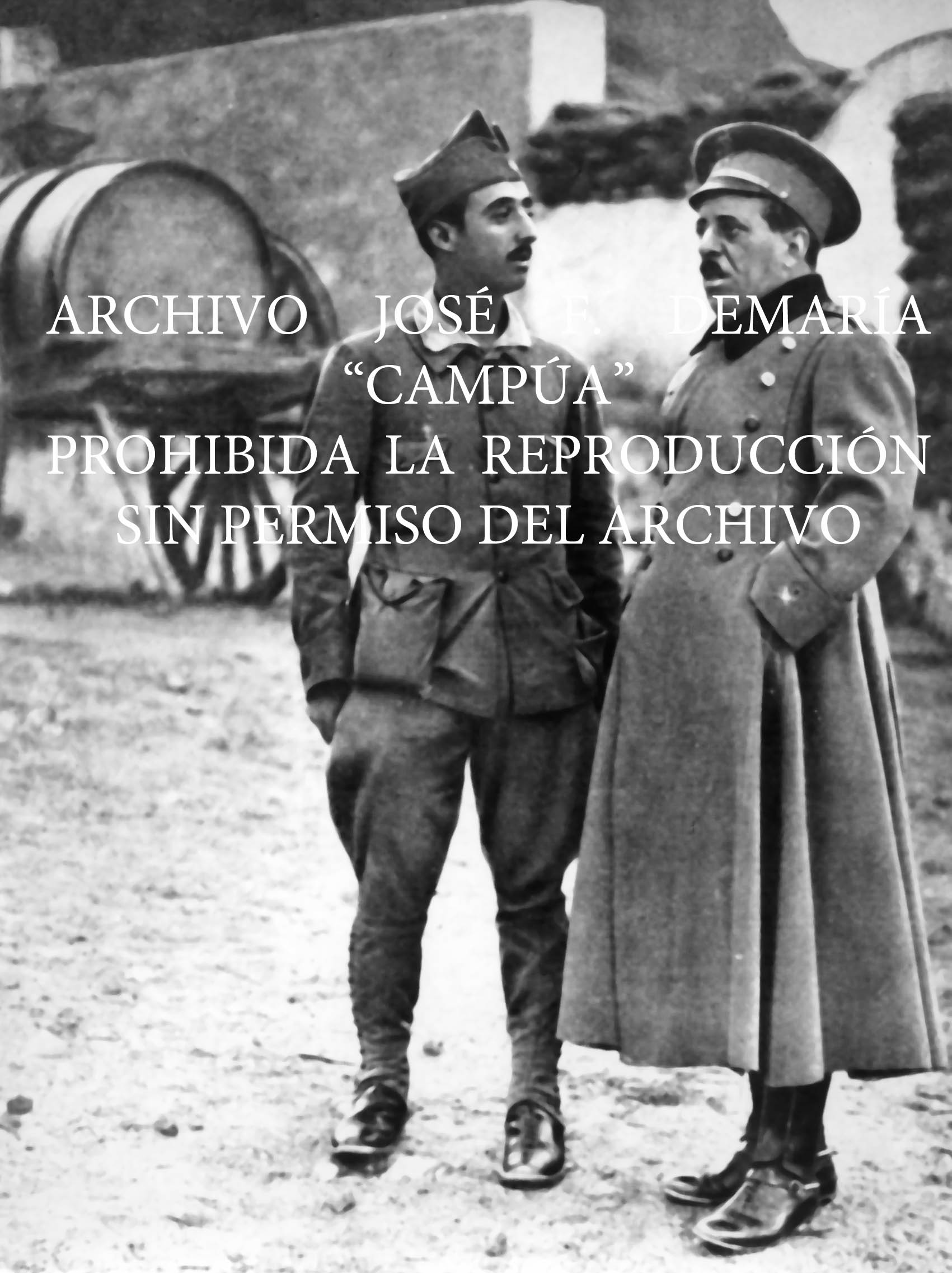El Tte. Coronel Millan Astray con D. Manuel Aznar, Director de "El Sol", el día antes de ser herido gravemente en el asalto a Nador y a quien S.M. el Rey ha nombrado gentilhombre. Octubre 1921. |