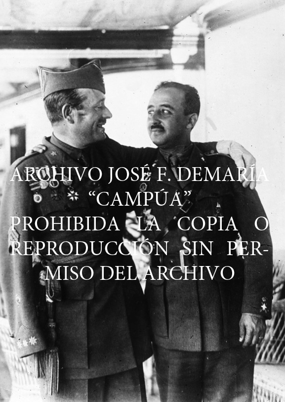 El Comandante Francisco Franco y el General de Brigada Sanjurjo Sacanell hablan antes de la ocupación de Ras-Medua que las fuerzas españolas tomaron al asalto, haciendo huir al enemigo que se resistió tenazmente. |