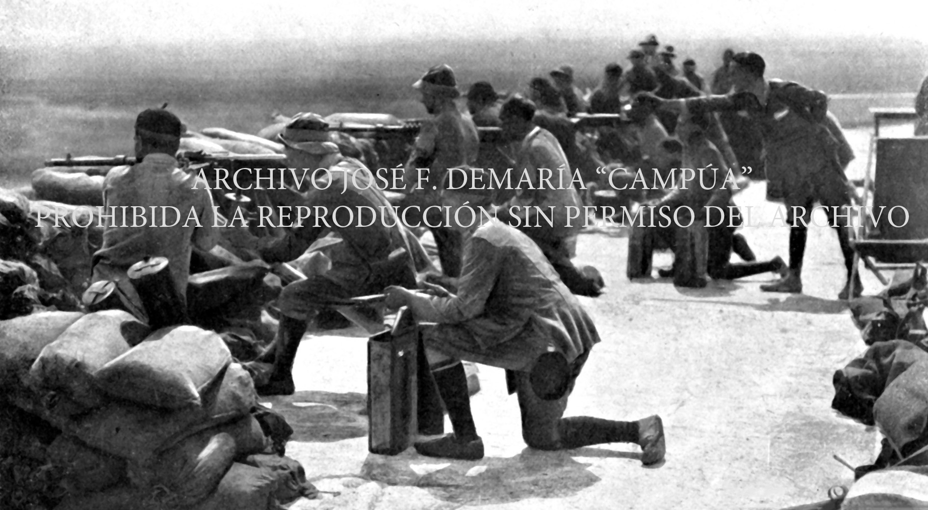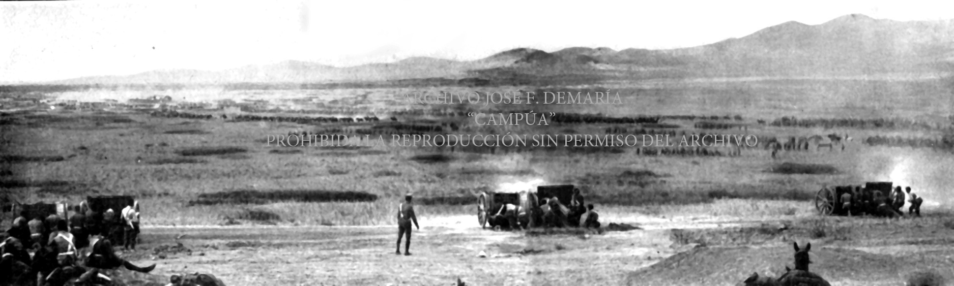 La artillería de la columna dirigida por el general Sanjurjo dispara sobre las posiciones insurgentes en la zona de Nador para defender un convoy enviado a la zona de Casabona. Septiembre de 1921 |