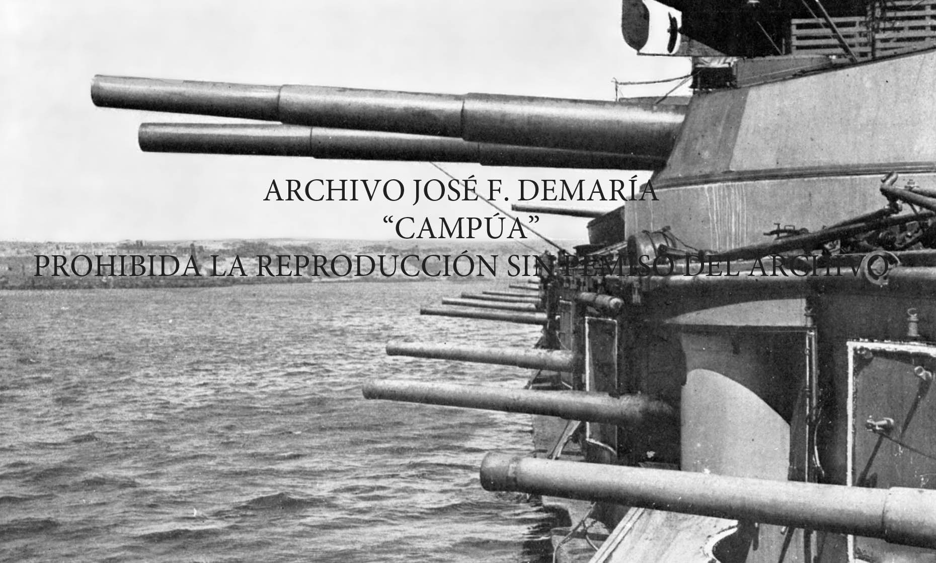 El Alfonso XIII tomando posición en el puerto de Melilla para bombardear a los grupos de moros rebeldes que atacaron a nuestras tropas en los combates de Benisicar. |