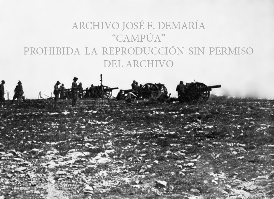 Fuerzas de artillería de montaña avanzando hacia Atlaten para entrar en posición y disparar sobre las posiciones enemigas del monte Esponja, que fue tomado al asalto por las fuerzas del general Sanjurjo. |