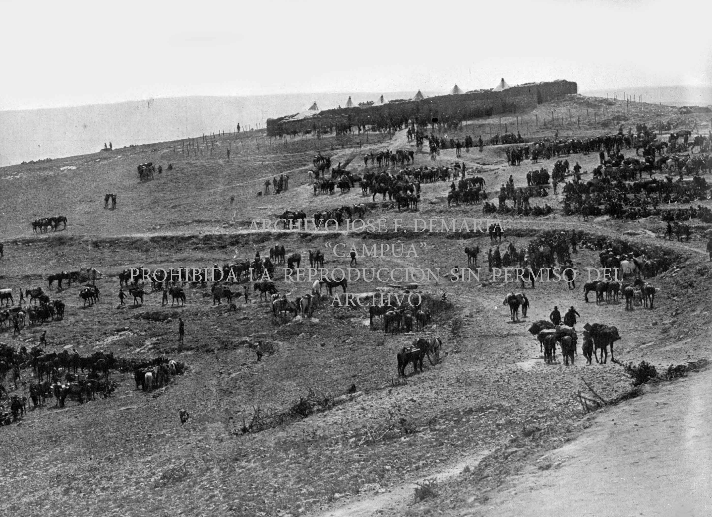 Fuerzas de la columna del coronel Riquelme avanzando sobre Taxuda. |