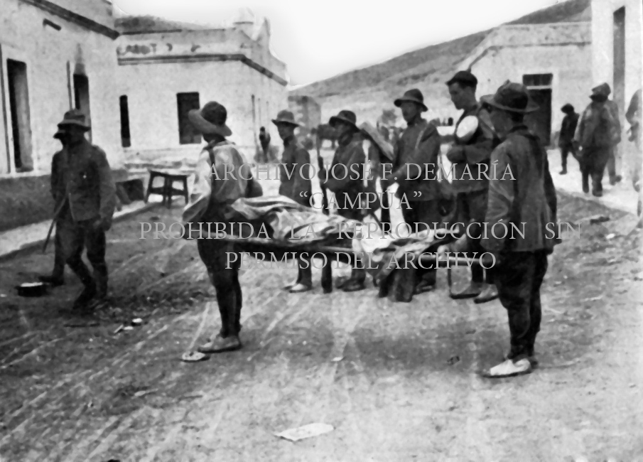 Conducción del cadáver de uno de los soldados caídos en la toma de Nador. |