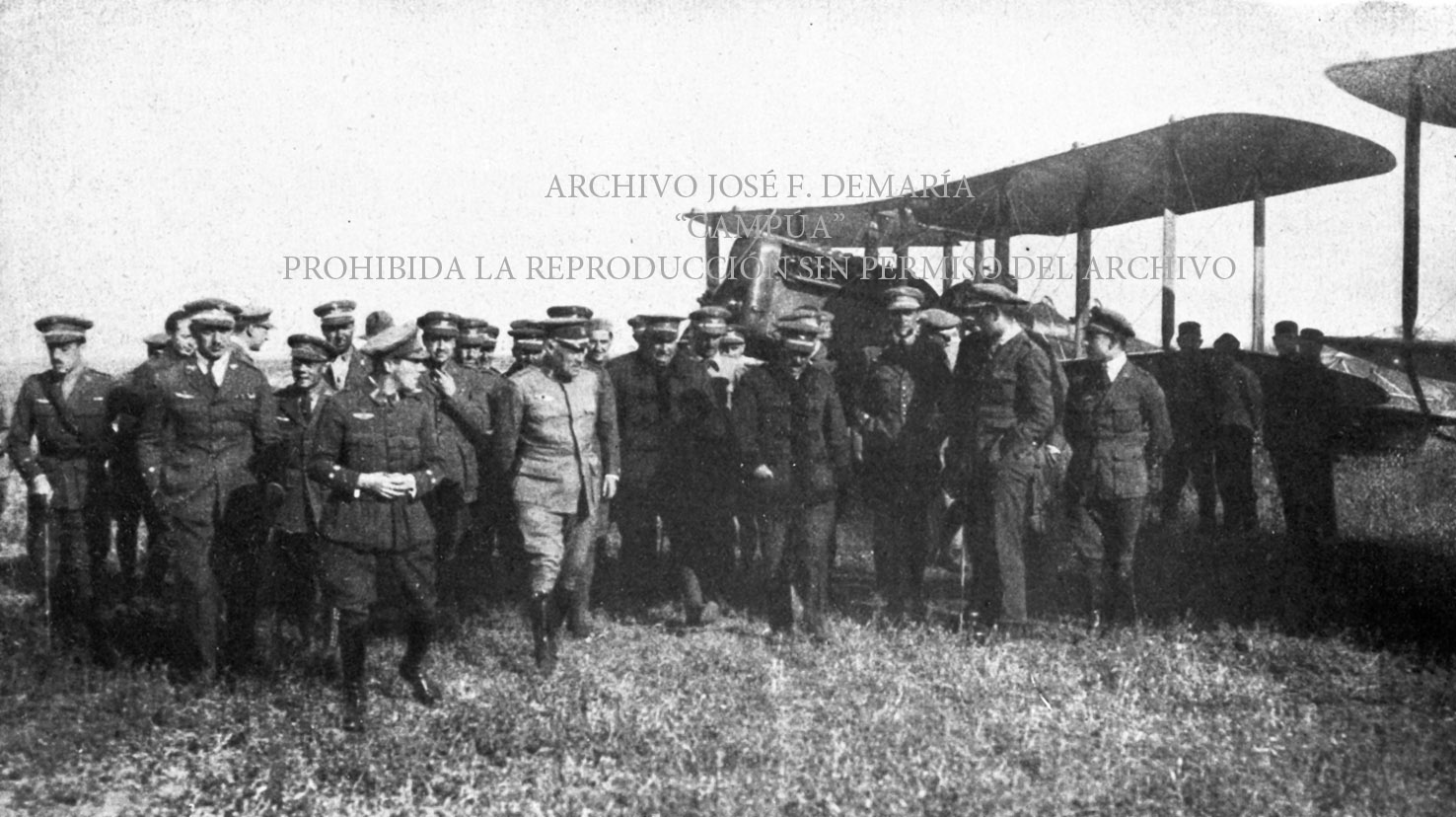 El General Sanjurjo y el general Berenguer revistas las unidades del servicio de aviación de Melilla. |