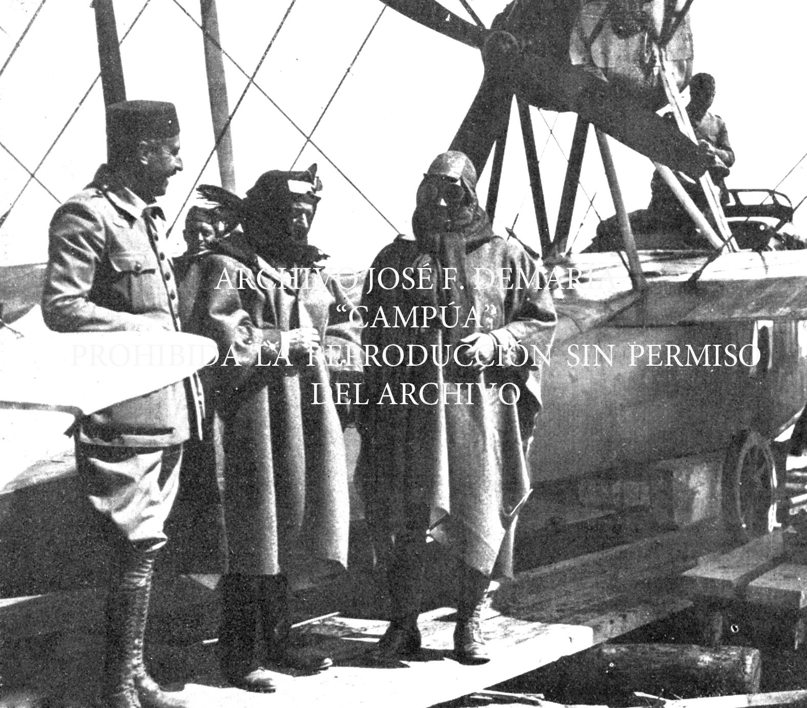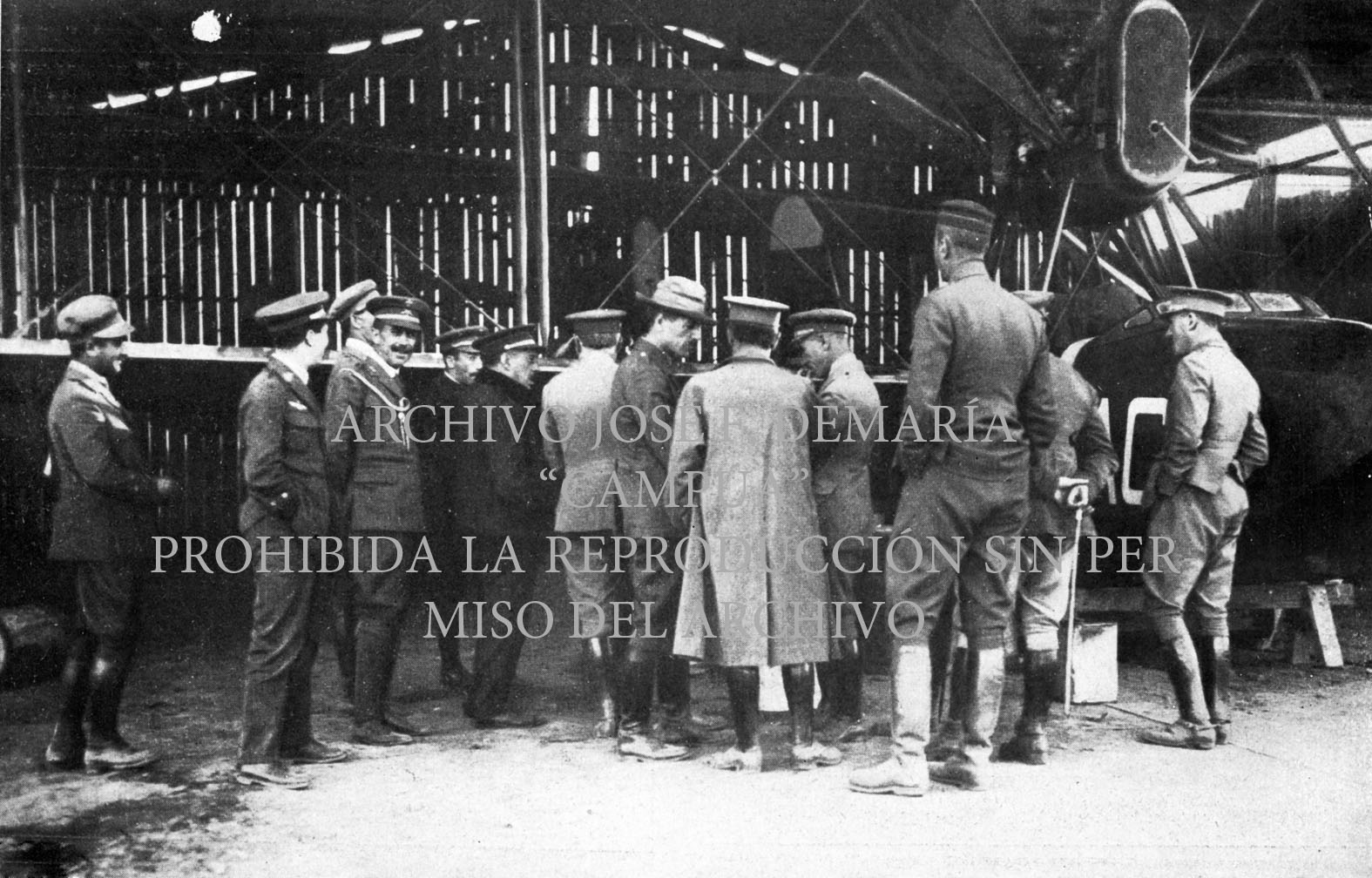 El General Sanjurjo con el Comandante Delgado, Jefe de los servicios de aviación de Melilla, revisa uno de los nuevos hidroaviones. |