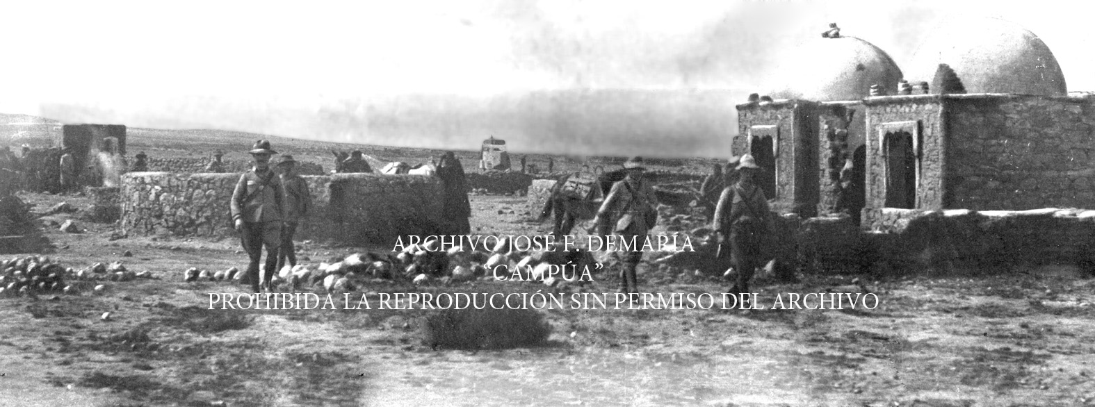Soldados destruyendo los aduares del enemigo en los pozos de Aograz. |