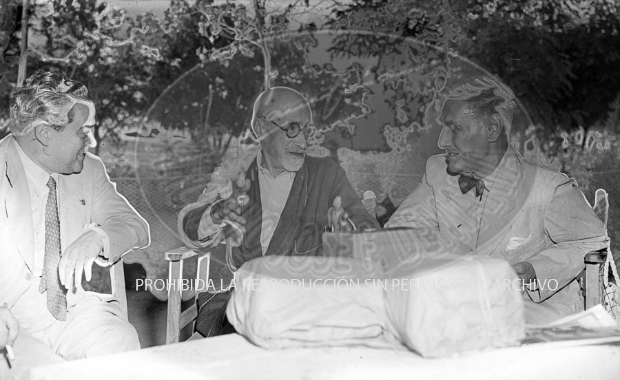 Jacinto Benavente en su casa, con el embajador de Filipinas Sr. Nieto y periodistas.