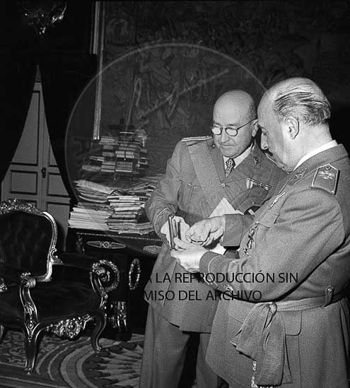 Franco recibe en audiencia al Marqués de Sales, Antonio del Rosal y Rico, General de Artillería. 15/4/1959