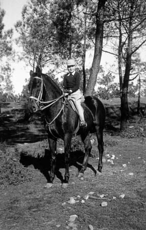 El Infante D. Juan Carlos y el Infante D. Alfonso montando a caballo en Estoril.