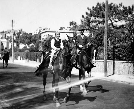 El Infante D. Juan Carlos y el Infante D. Alfonso montando a caballo en Estoril.
