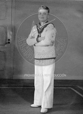 Celebración de la Primera Comunión del Príncipe D. Juan Carlos. Acto religioso y retratos.