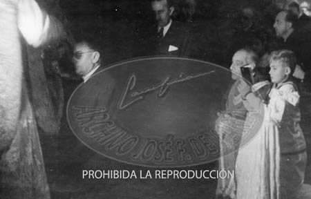 Celebración de la Primera Comunión del Príncipe D. Juan Carlos. Acto religioso y retratos.