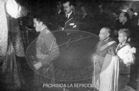 Celebración de la Primera Comunión del Príncipe D. Juan Carlos. Acto religioso y retratos.